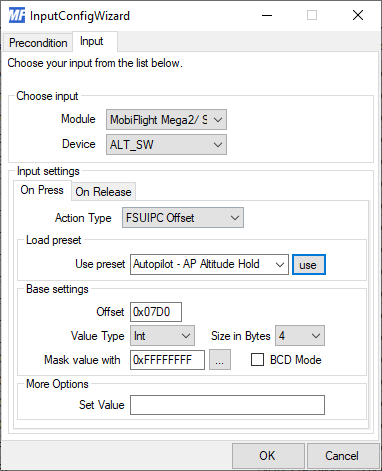 I found mapping for all buttons with the exception of ALT button. I need to find the FSUIPC Offset, can someone help me?